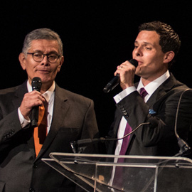 The evening includes a spirited performance by classical musician duo Igudesman & Joo. Violinist Aleksey Igudesman and pianist Hyung-Ki Joo are the inventive comic duo whose hilarious mix of music, pop culture and pure zaniness has won them fans of all ages and cultures worldwide. Highly trained musicians, their inspired silliness can start with Rachmaninoff or Liszt and find its way through martial arts, movie classics, rock, hip hop, folk, heavy metal and disco, step dancing and Monty Python’s Ministry of Silly Walks. But behind all the laughs is the very serious mission of winning new audiences for this art form they both love so much. Explains Igudesman, “We always say that we don’t make fun of the music. We make fun with the music.”